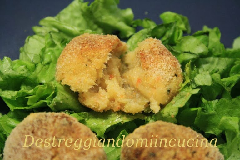 Formare polpette o crocchette, rigirare in pangrattato e cuocere in forno a 200° per 20/25min